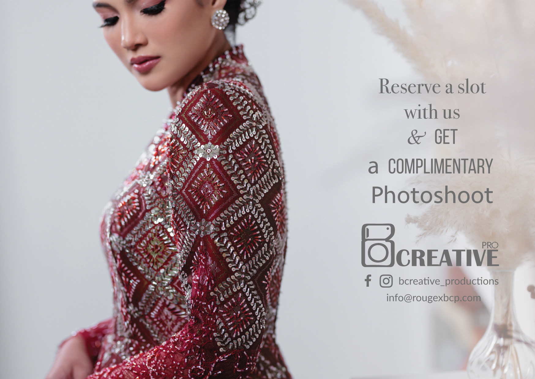 Professional Wedding specialized Group Contact: +65 9299 6934 Email: info@rougexbcp.com Share your LOVE journey with us!